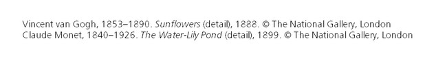 ひまわり/ファン・ゴッホ 1.黄色×緑色 2.茶色×緑色 睡蓮の池/モネ 3.紺色×紫色 4.水色×紫色