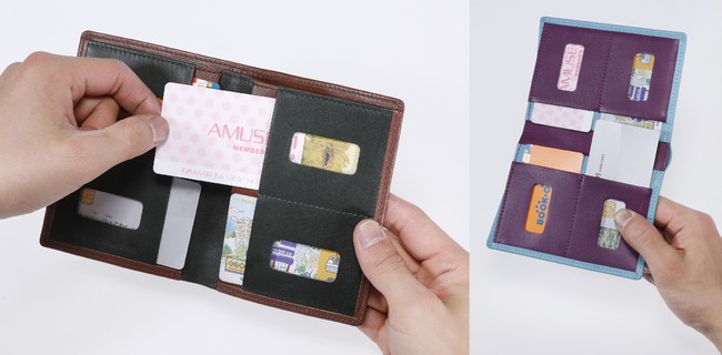 小窓が付いたカードポケットはカードを指先でスライドさせやすく、スピーディに取り出せます。
