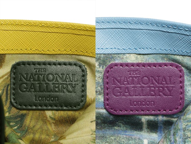 札入れの内側に、「ロンドン ナショナル・ギャラリー」公認の証として、同館のロゴを型押しした革パッチを縫い付けています。