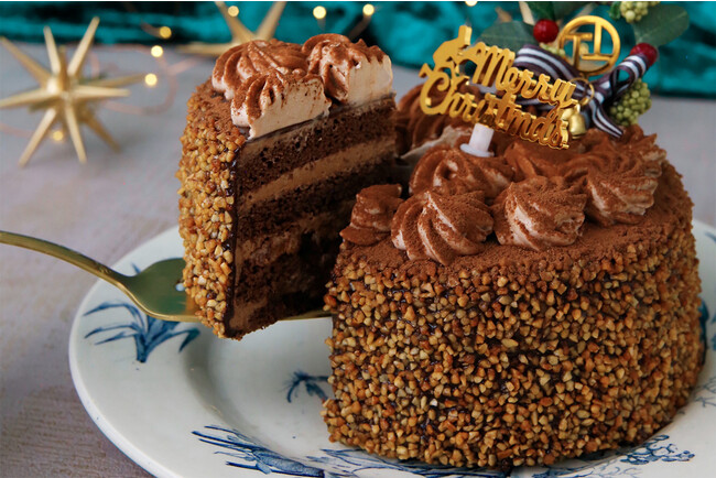 なめらかなクーベルチュールチョコレートクリームが味わい深い、チョコレート好きにはたまらないクリスマスケーキです。