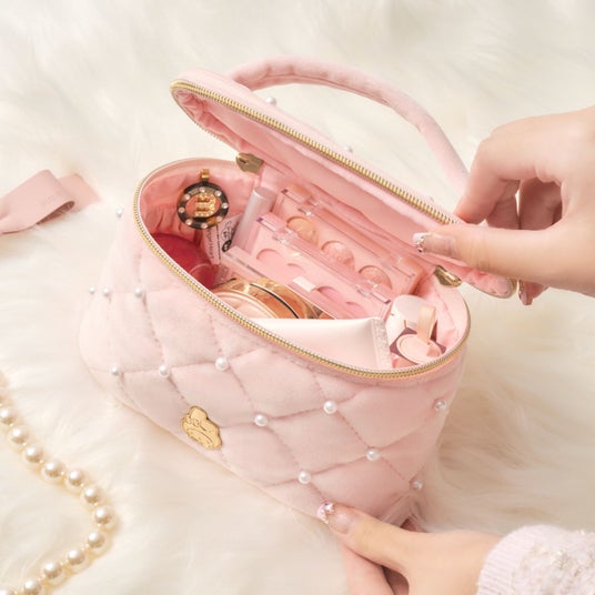 時計ボックスの代わりとしてクロミの時計にはクロミの、マイメロディの時計にはマイメロディのふわふわバニティポーチがそれぞれ付属します。