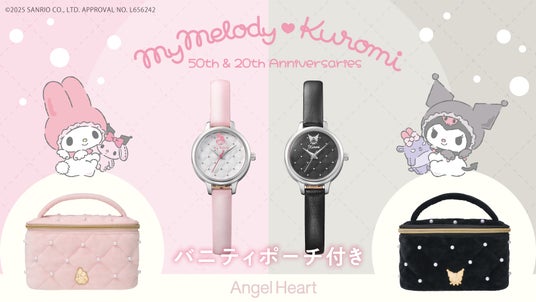 株式会社ウエニ貿易(本社:東京都台東区、代表取締役社長:宮上光喜)の腕時計ブランド「Angel Heart(エンジェルハート)」はブランド設立20周年を迎え、同じく周年を迎えた、50周年のマイメロディと20周年のクロミとのコラボレーションウォッチを2025年5月14日(水) より、サンリオオンラインショップにて販売いたします。また、本商品には時計ボックスの代わりとなる時計のデザインとリンクしたふわふわバニティポーチが付属します。