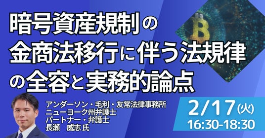 JPI(日本計画研究所)は、アンダーソン・毛利・友常法律事務所 ニューヨーク州弁護士 パートナー・弁護士 長瀬 威志 氏を招聘し、暗号資産規制の金商法移行に伴う法規律の全容と実務的論点について詳説いただくセミナーを開催します。