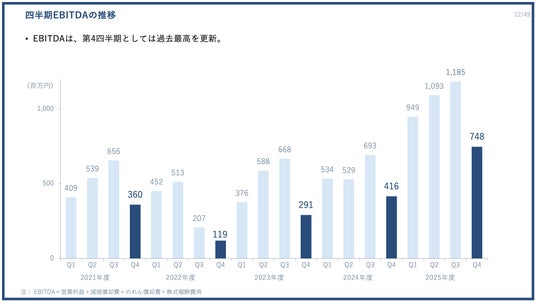 四半期EBITDAは、第4四半期としては過去最高を更新しました。