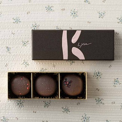 自家挽きしたアーモンドを加えて焼き上げた香ばしい食感が特徴のマカロンを、パリッと薄いショコラでコーティングした、「セバスチャン・ブイエ」のスペシャリテ「マカリヨン」。フランスのリヨン本店でも通年親しまれ、ブイエ氏自身も思い入れの深い逸品。