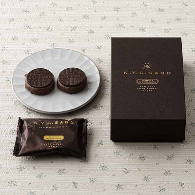 伝統と最新を併せ持つ表情豊かなニューヨークのお菓子をアレンジした商品を展開する「N.Y.C.SAND」。ビターなダークチョコレートと香り豊かなミルクチョコレート、アーモンドスカッチの絶妙な一体感。リッチなバタークッキーでサンドし、手作業で8層に仕上げた。
