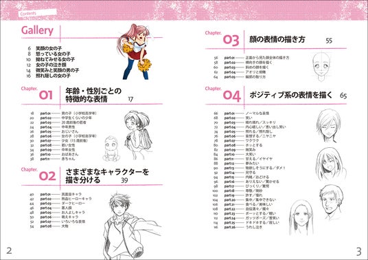 正面・横・斜めから見た顔の表情の描き方から、真面目キャラや萌えキャラなどいろいろなキャラクターの描き分けや、「照れ隠し」「甘える」「拗ねる」など喜怒哀楽の微妙な心理描写の表現まで紹介した1冊です。