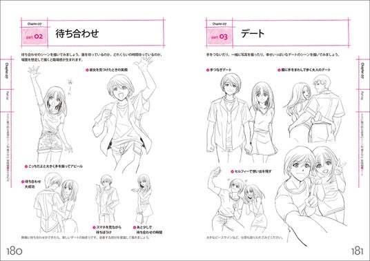 恋愛シーンや、仕事のシーンなど、マンガやアニメーションで描きたい14のシーンを収録しています。