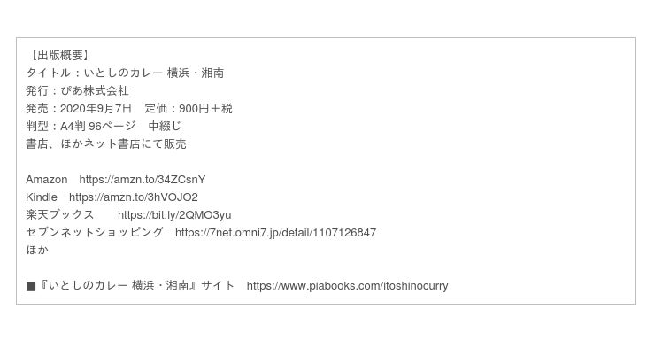 ■『いとしのカレー 横浜・湘南』サイト https://www.piabooks.com/itoshinocurry