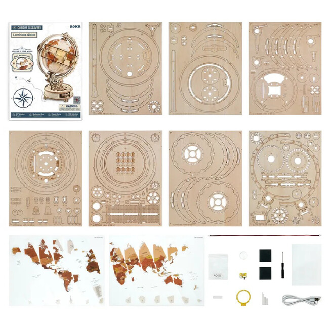 木製の細かい細工が美しく、ひとつひとつのパーツを楽しんで、パズルを組み立てて地球儀を完成させてください!
