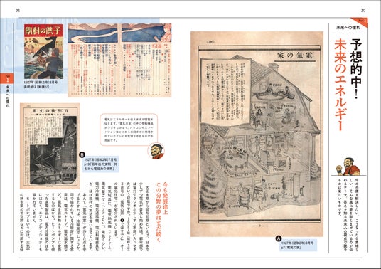 中でも興味深いのが、各分野の未来予想。将来の都市の姿はこれだ! エネルギーはこうなる! などなど、当時の科学リテラシーで解説される100年後の世界、その予想が当たっているか否か、現代人の私たちならわかります。未来の交通の主役になると思われていた飛行船の存在、人類が月に行けるのは2050年と考えられていたことなど、予想が外れた記事を楽しめるのは現代人ならではの特権でしょう。もちろん、ズバリ的中された記事もたくさんあります!