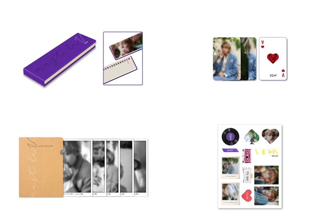 写真集「VICON『a magazine about V』」では雰囲気の異なる3つのルックで撮りおろし、Vのインタビューも収録されています。4タイプで刊行され、それぞれに豪華特典4点がついた、ファン垂涎の一冊になります。