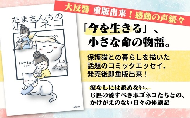 世界文化社は、保護猫との生活の様子を描いたコミックエッセイ『たまさんちのホゴネコ』を、好評につき発売後即重版いたしました。読者からの反響の声の一部をお伝えいたします。なお、本書の売上の一部は、猫や犬などの動物福祉活動に充てられます。
