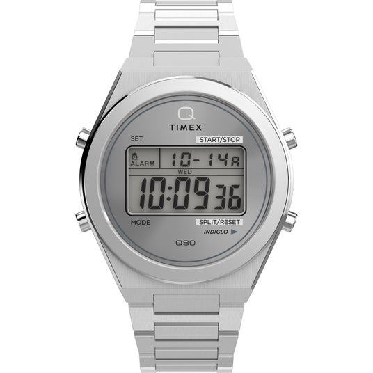 ウエストハリウッドの大胆なデザインとレトロな魅力を体現した『Q Timex(R) Q80 Continental』は、洗練されたラウンド型ケースと、サンバースト仕上げのブラッシュ仕上げが施された長方形のデジタル表示を特徴とし、Q Timex(R)を現代に蘇らせます。