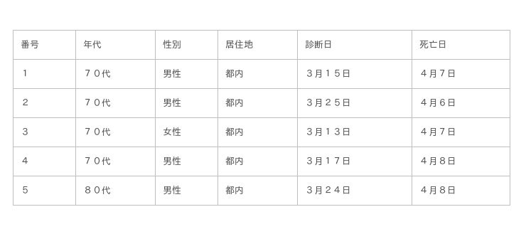 都内で新型コロナウイルスに感染した方が死亡されましたのでお知らせします。