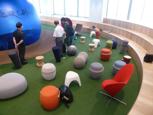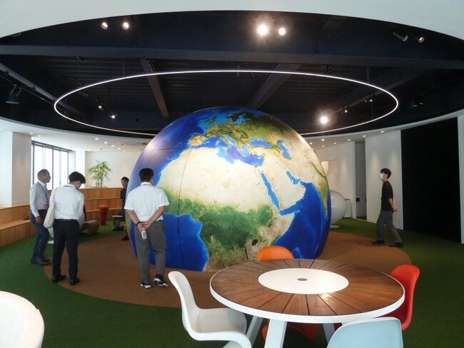 同社は「地球を耕す」を企業理念として掲げており、それを構成員に浸透させることを目的としてオフィスのリノベーションを実施。元は普通の会議室であったスペースに地球型の会議室を設ける等、地球を外から見るという「理念を見える化」した空間を作り上げました。