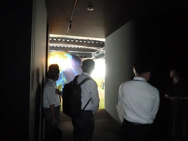 地球型の会議室を含む「ビジョンオフィス」内では、同社の稲田和也知識製造部事業サポート部長が企業概要やリノベーションの経緯を説明。地球型会議室を球体にするため、当初は建築業者になかなか受けてもらえなかったり、社内から様々な意見が挙がったり、様々な苦労があったが、企業理念を体現する“宇宙から臨む地球”を実現するために丁寧な説明を重ね、合意を得て実現したとの経験談が語られました。