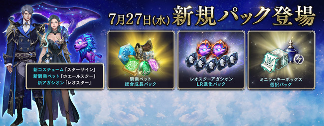 本アップデートより可愛らしいクジラ座をイメージした騎乗ペット「ホエールスター」や、しし座をイメージしたアガシオン「レオスター」が登場いたします。