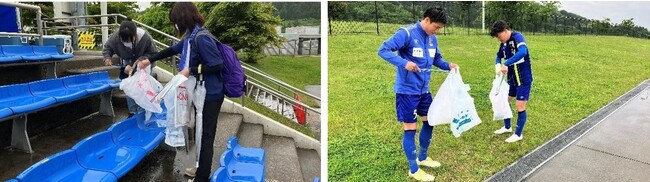 清掃活動では、選手とスタッフ、観客が試合後に会場内で30分にわたり一緒にごみ拾い作業を行いました。
