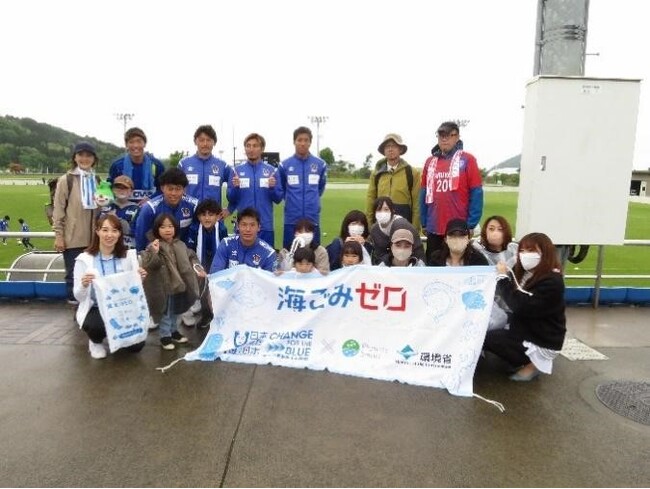 こうした中で2020年より、JFLラインメール青森FCにご協力をいただき「海ごみゼロマッチ」と題した試合&清掃活動を開催しています。今年度は5月28日(日)に、新青森県総合運動公園球技場でのFCマルヤス岡崎との対戦を「海ごみゼロマッチ」として開催して、試合の後に選手・スタッフ・観客などが試合会場内の清掃活動を実施し、参加者への海洋ごみ問題の周知啓発とともに、海洋ごみを出さないという意識を醸成するきっかけを作りました。