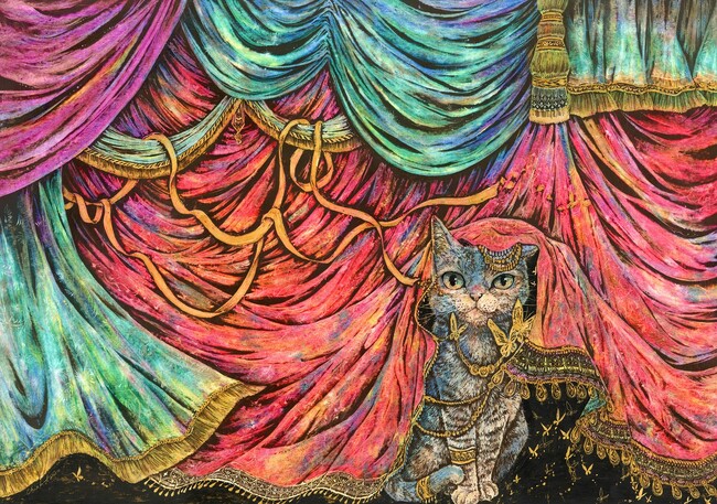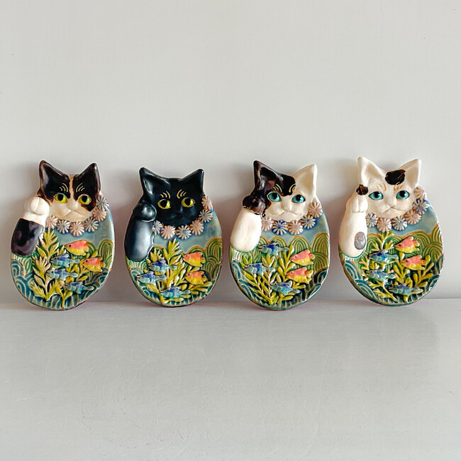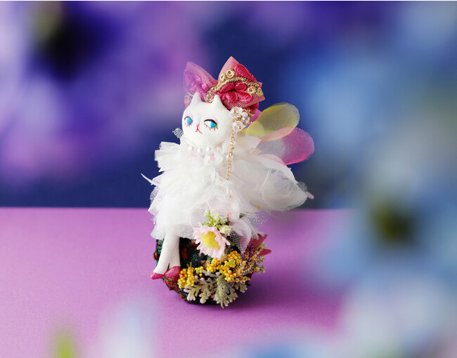 今回は「猫と妖精展」をご紹介いたします。頭に蛸を載せたユニークな猫、ツンと澄ました猫、思い切りくつろいだ猫など、さまざまな表情の猫と妖精たちを5人の作家が絵画や人形、陶芸で表現した作品をご高覧ください。
