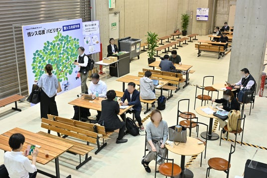 情シス応援パビリオンに隣接した、情シスのためのラウンジです。「情報システム」の来場者バッジをお持ちの方、その同行者の方が無料で利用できます。ひと言メッセージを書いて「情シスのぼや木」に貼っていただいた方には先着順でスイーツをプレゼントする企画も開催します。