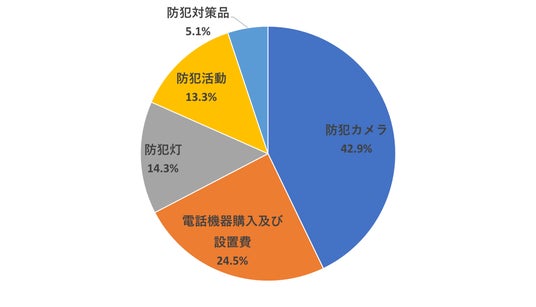 防犯カメラの補助金が最も多いため、それに伴った割合と考えられます。