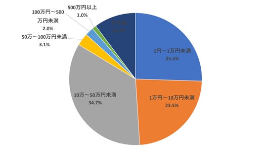 10万~50万円未満の補助額のものが34.7%と最も多いです。
