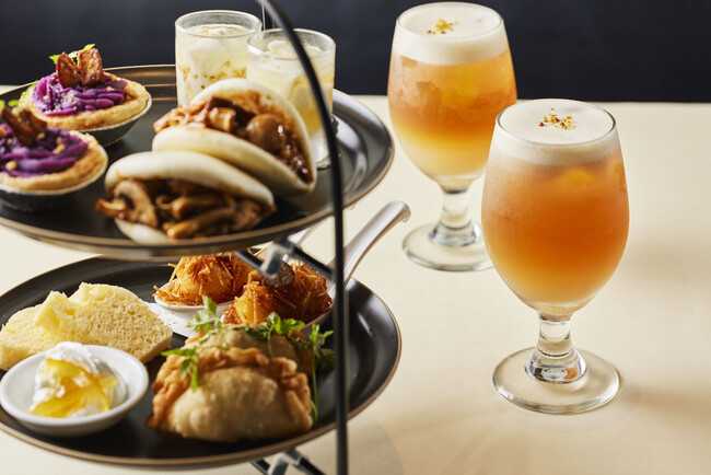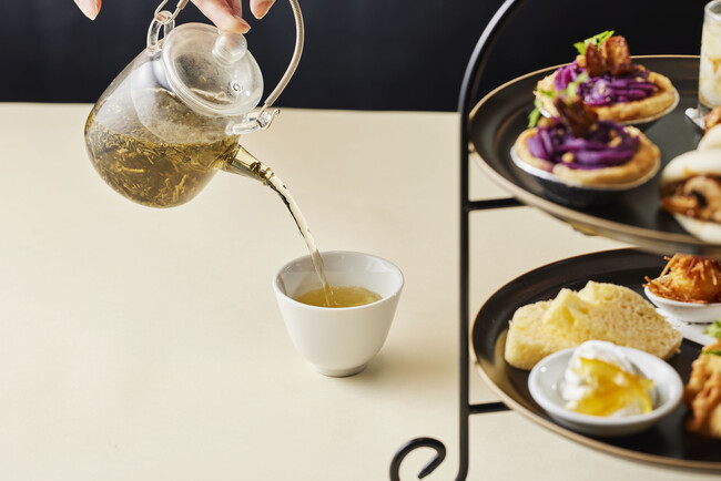 華やかな香りの金木犀や、定番のキノコ。まろやかな甘みが心安らぐ紫芋。秋の末が旬のゆずなどを取り入れたスイーツ&セイボリーで、秋の始まりから終わりまでを表現しました。また、最後までより充実したティータイムを過ごして頂きたいという思いを込めて、厳選した中国茶5種類は時間内おかわり自由でご提供いたします。