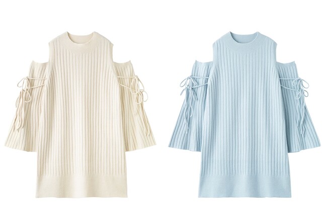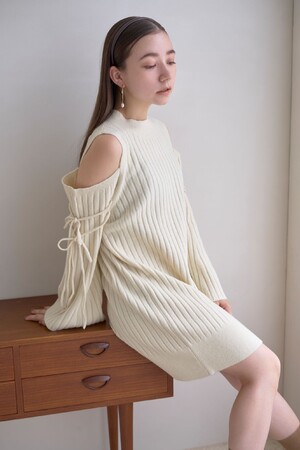 肌見せで女性らしさを引き立てるオープンショルダーニットワンピース。