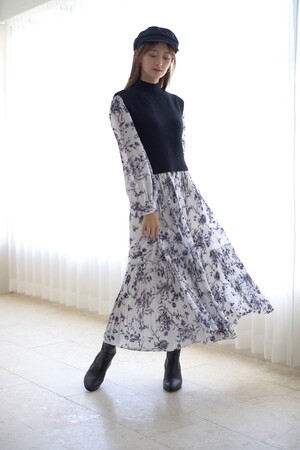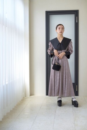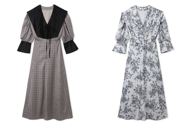 昨年2021年秋冬コレクションで発売し人気を博した、トレンドのビックカラーが目を惹くワンピースが新たにチェック柄とオリジナルのフラワープリントで再登場。