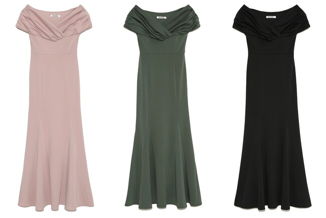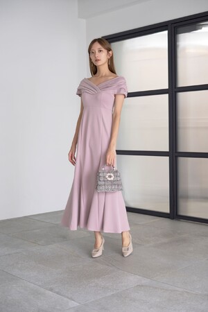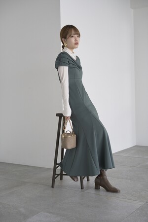 タイトな身頃から裾に向かってエレガントに広がるマーメイドシルエットで女性らしさをさらに引き立てます。