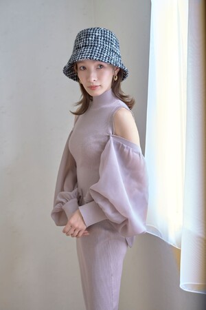 タックデザインやモードなディテールで、遊び心を効かせつつも、女性らしい胸元の開き具合や美しいシルエットで、SNIDELらしいレディな印象へと昇華させました。