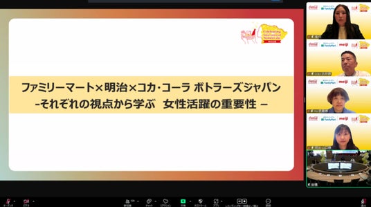株式会社ファミリーマート(本社:東京都港区、代表取締役社長:細見研介、以下 ファミリーマート)は、コカ・コーラ ボトラーズジャパン株式会社(本社:東京都港区、代表取締役社長 最高経営責任者:カリン・ドラガン、以下 コカ・コーラ ボトラーズジャパン)、株式会社 明治(本社:東京都中央区、代表取締役社長: 松田克也、以下 明治)とともに、2025年3月8日の「国際女性デー(※)」に合わせ、女性活躍推進をテーマとした社内オンラインイベントを開催しました。業界の垣根を超えた3社の取り組みを知ることで、新たな気付きを得るとともに、企業の女性活躍の重要性をあらためて考える機会となりました。