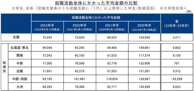 コロナ禍に進んだ就職活動費用の減少傾向は落ち着く。2022年卒で減少した「交通費」「宿泊費」の大きな増減は見られず