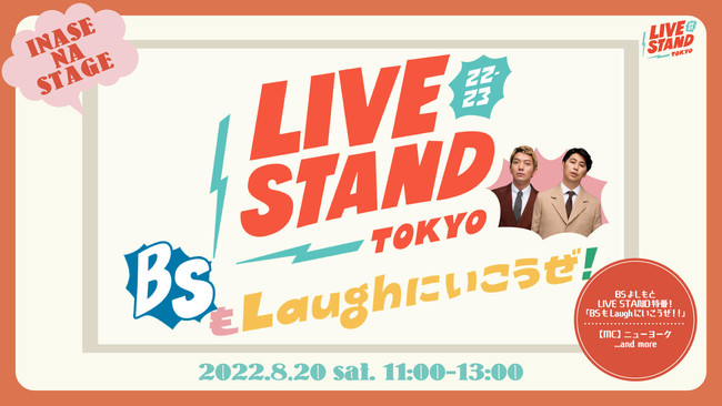 いよいよ、今週末8/19(金)~21(日)に開催が迫っている、日本最大級のお笑いフェス『LIVE STAND 22-23 TOKYO』 。 BSよしもとでは、イベント2日目となる8/20(土)の開演前となる午前11:00から、LIVE STAND会場となる幕張メッセの盛り上がりを2時間の生放送でお届けします。MCのニューヨークをはじめとして、見取り図、空気階段、オズワルドといった人気芸人たちが次々に登場し、現場の様子をトークでつなぎます。
