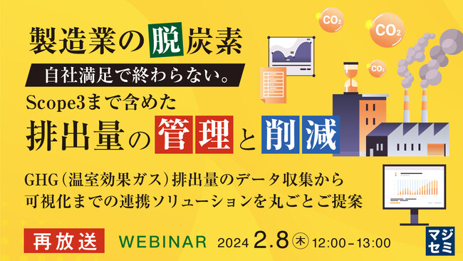 マジセミ株式会社は「製造業の脱炭素、Scope3まで含めた排出量の管理と削減」というテーマのウェビナーを開催します。