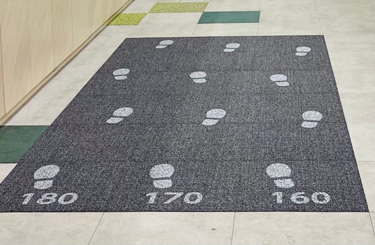 脂肪燃焼に効果的とされる理想のウォーキング歩幅(身長×45%)※3を体感できる「歩幅チェックスペース」を独自開発し、紀尾井町オフィスなどの主要拠点に設置しています。