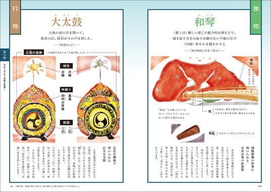 演奏される機会の多い演目の見どころ聴きどころや、豪華で雅やかな装束の文様、そして楽器と舞について、教養として知っておきたい雅楽知識が満載です。