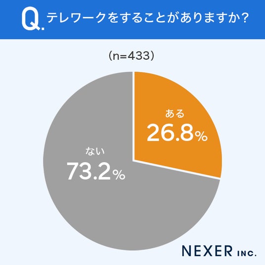 26.8%と3割近くの方が、テレワークをすることが「ある」と回答しています。