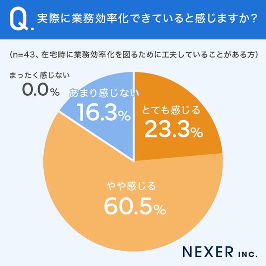 さらに、在宅時に業務効率化を図っていると回答した方に、実際に業務効率化できていると感じるか聞いてみました。