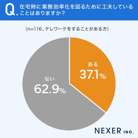 テレワークをすることがある方の37.1%が、在宅時の業務効率化を図るために工夫していることが「ある」と回答しています。