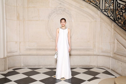2024年 6月24日にパリで行われた2024-2025年秋冬 オートクチュール コレクション ショーで俳優の綾瀬はるかをフロントロウにお迎えしました。綾瀬はるかはディオールの2024-2025年秋冬コレクションからのホワイトシルクのドレスを纏いました。また、ディオール ファイン ジュエリーから、イエロー、ピンク、ホワイトのゴールドをカラーミックスした「ローズ デ ヴァン」のブレスレットに、オニキス、マザー オブ パール、ダイヤモンドをあしらったリングを着用しました。