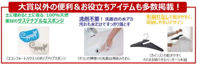 今回は、ここ数年続いている、おうち需要の世相を反映し、「おうち美容・ケア」などの部門を増設しました。調味料や自宅でのパーティに便利なアイテムなども紹介しているのが特徴。好評の「お試し隊」企画では、ホームベーカリー、コーヒーメーカー、美容ケア家電などを実際に体験。臨場感あふれるコメントが見ものです。物選びに定評のある目利きさんたちのアンケートからセレクトした、今年らしい道具大賞企画。ぜひご期待ください。