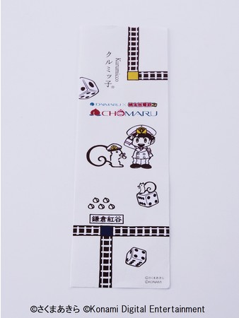 鎌倉土産の定番クルミッ子。桃鉄キャラクターをプリントした短冊型カードを、パッケージに差し込みました。