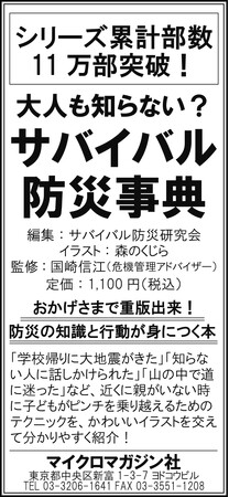 マイクロマガジン社(東京都中央区)は、『大人も知らない? サバイバル防災事典』を3月11日の福島民友新聞に掲載いたしました。