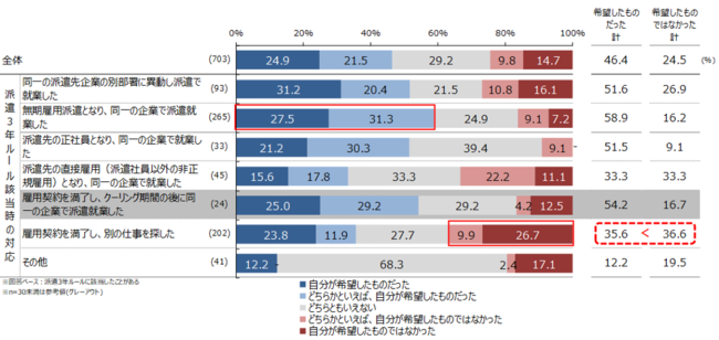 派遣3年ルール該当者の37.7%が無期雇用派遣社員に。一方で働き慣れた職場での雇用契約を満了する人も3割に迫る【図4、5】