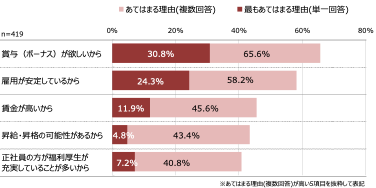 派遣社員を選んだ理由は「正社員を希望していたが、希望条件に合う正社員の仕事がなかったから」が前年比+10.3ptで最も増加【図3】