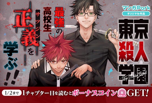 マンガParkでは「東京殺人学園」の新連載を記念して、読書チャレンジキャンペーンを実施いたします。期間限定&読めば必ずコインがもらえるBIGチャンス!