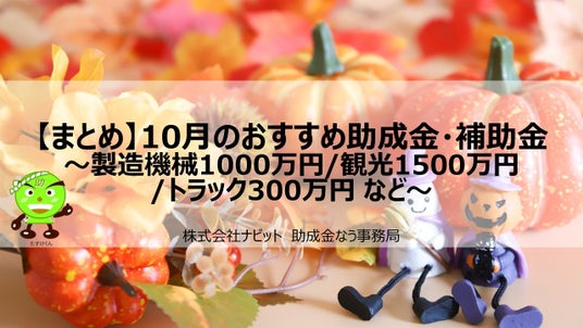 2024/10/24(木)より、「【まとめ】10月のおすすめ助成金・補助金~製造機械1000万円/観光1500万円/トラック300万円 など~」の販売を開始します!